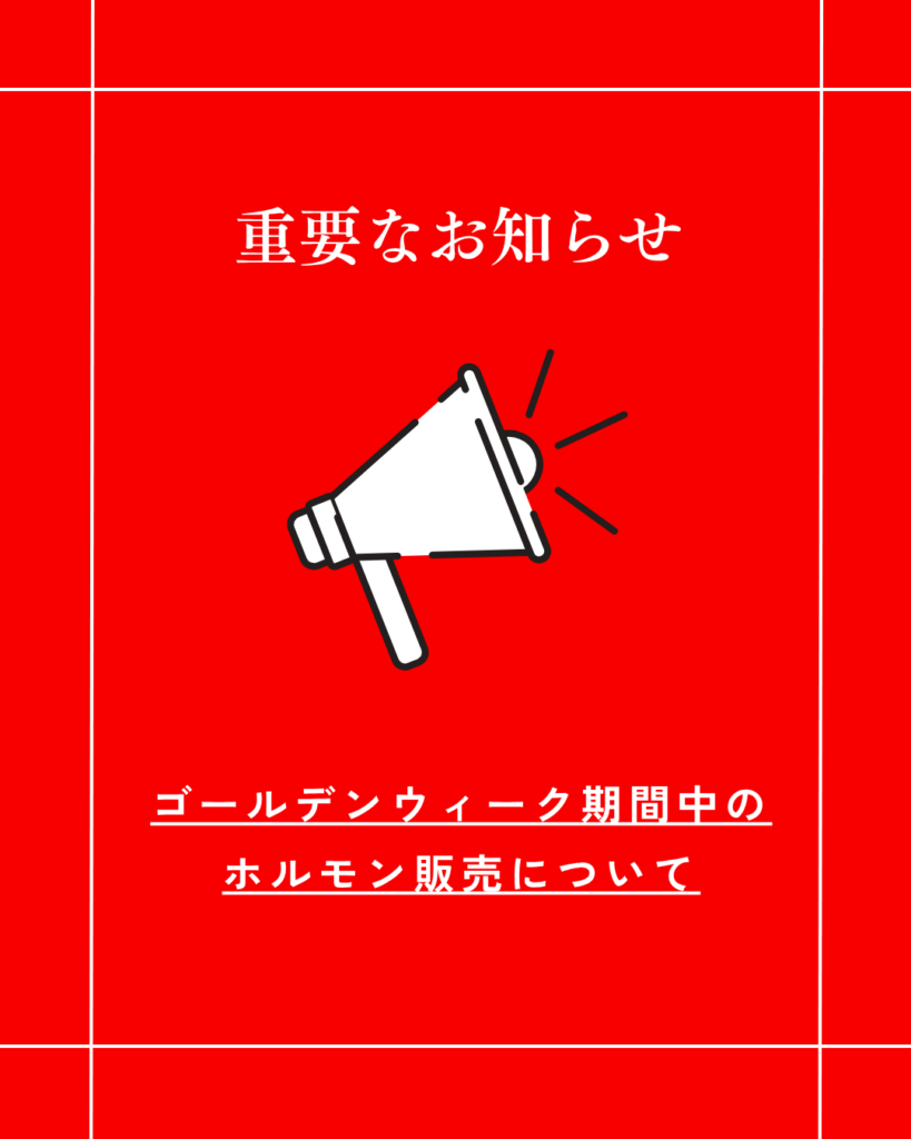 【重要】2026年ゴールデンウィーク期間のホルモン販売について2026.04.24